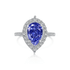 La pierre taille poire est entourée d'une rangée de pierres Cz de haute qualité et d'une demi-bande pavée pour ajouter du glamour.